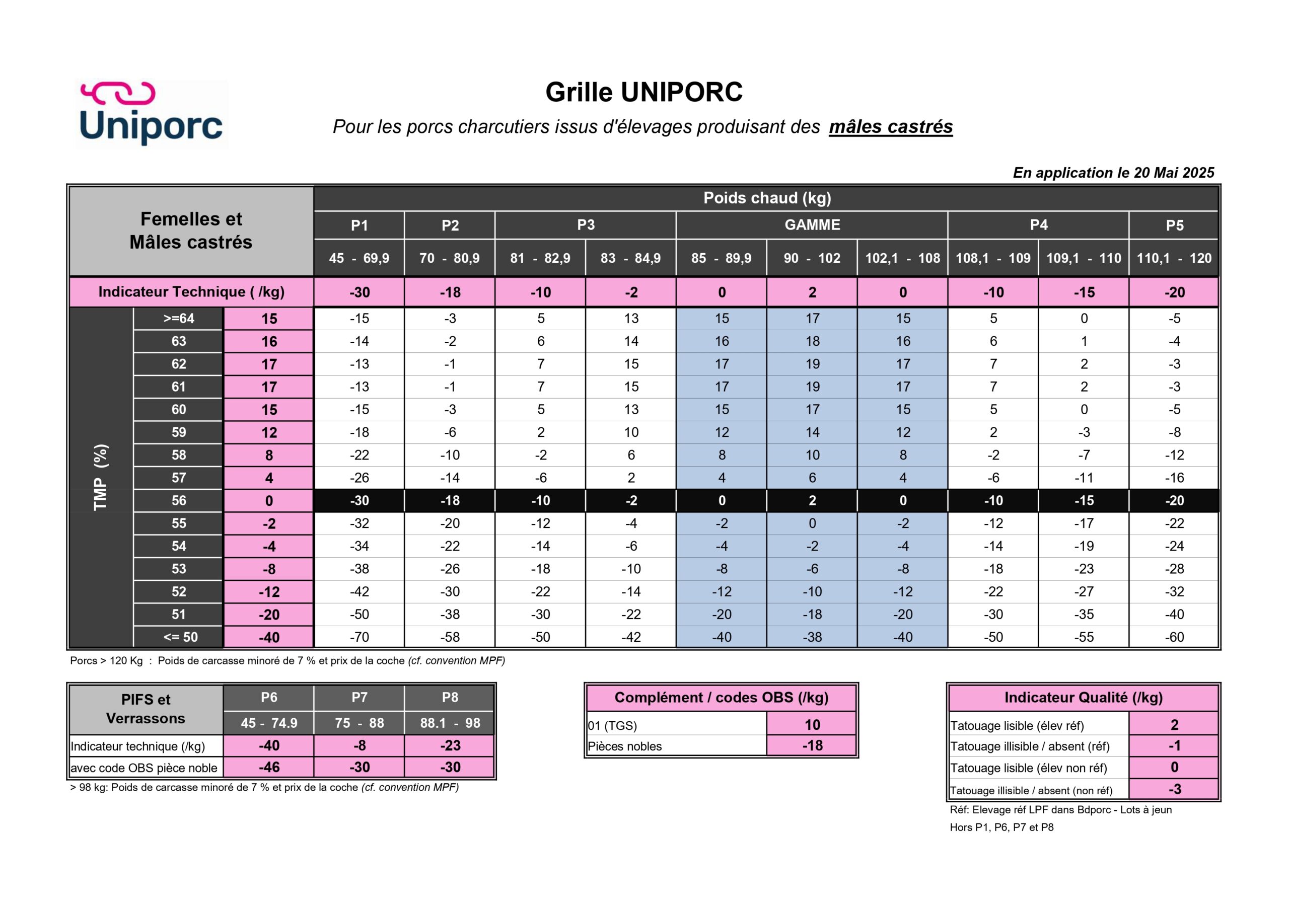Il est équipé d’une sonde mesurant l’épaisseur de gras et maigre de chaque carcasse, pour en déterminer le Taux de Muscle des Pièces.