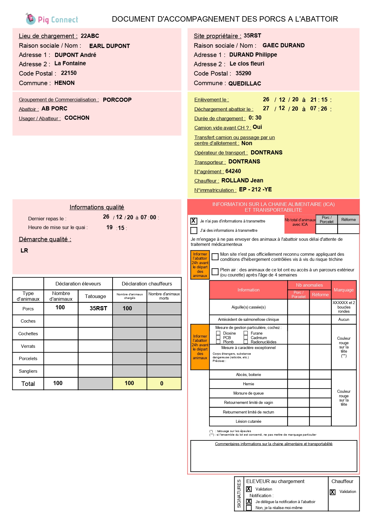 Pig Connect est connecté en permanence à la base de données BDPORC. Les informations sont donc régulièrement mises à jour.